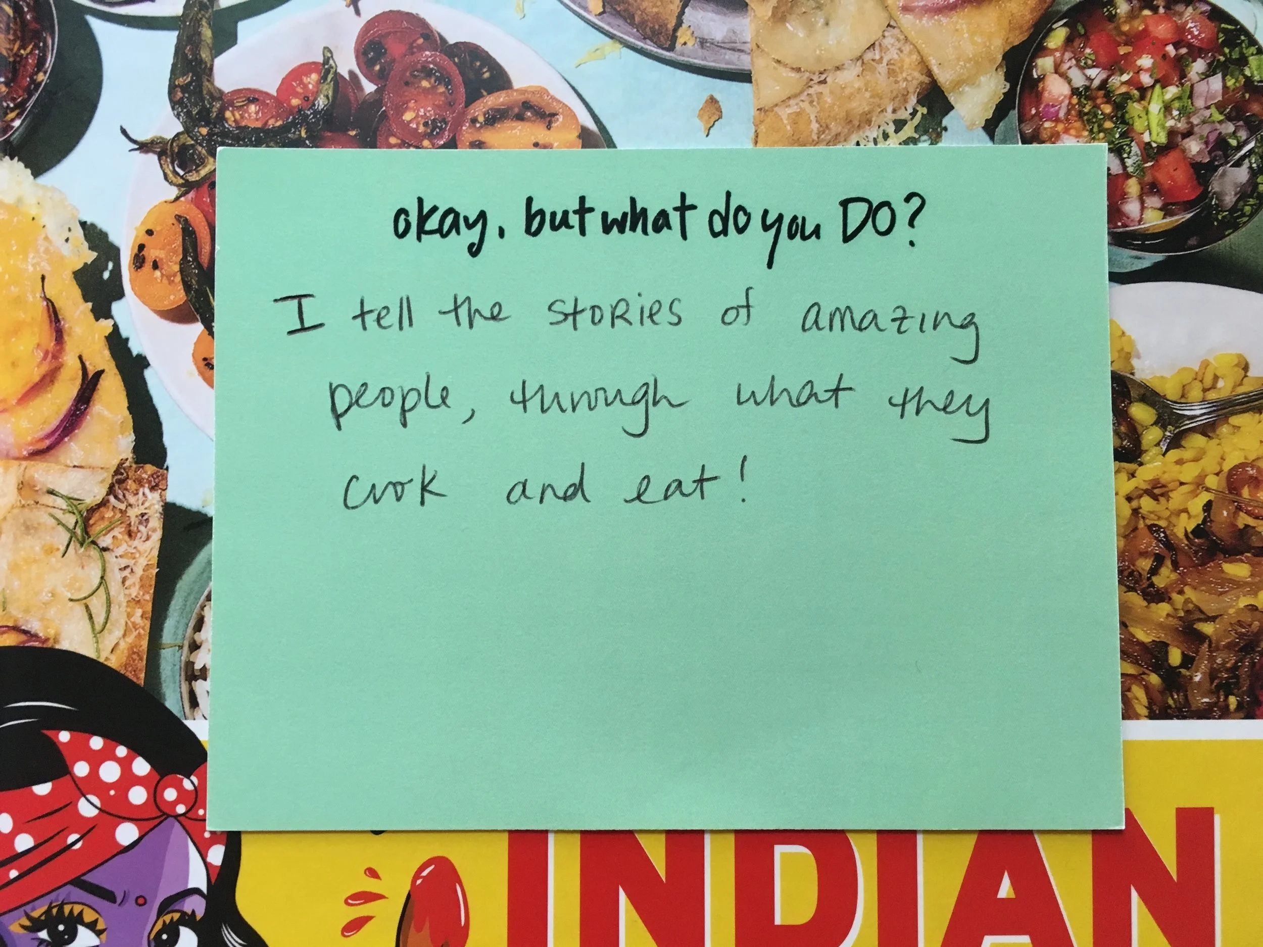 Okay, But What Do You Do?: I tell the stories of amazing people, through what they cook and eat!