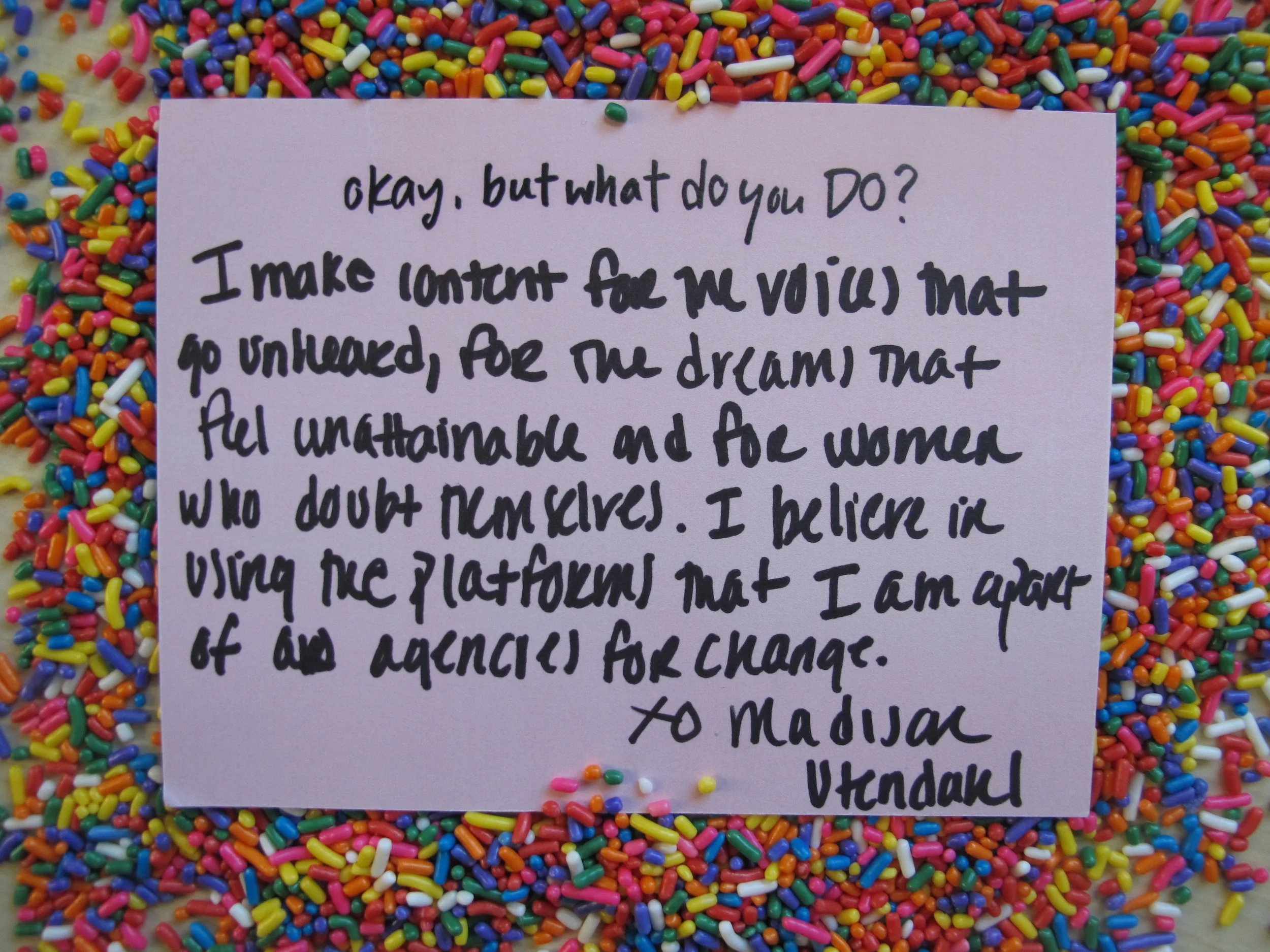 Okay, But What Do You Do?: I make content for the voices that go unheard, for the dreams that feel unattainable and for women who doubt themselves. I believe in using the platforms that I am apart of as agencies for change.