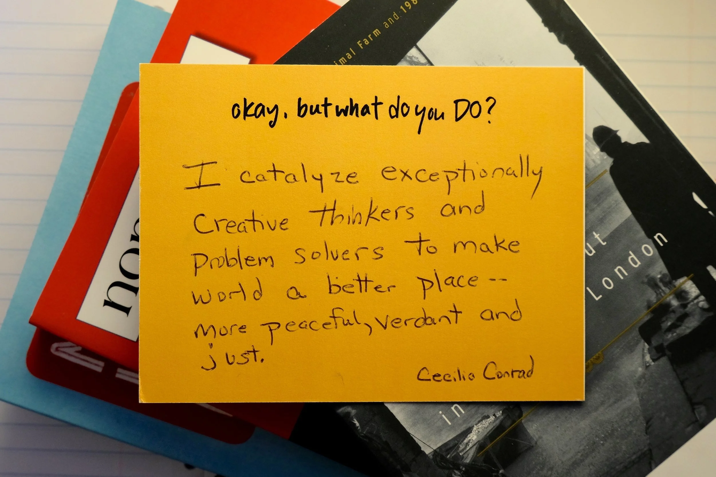 Okay, But What Do You Do?: I catalyze exceptionally creative thinkers and problem solvers to make the world a better place – more peaceful, verdant, and just.